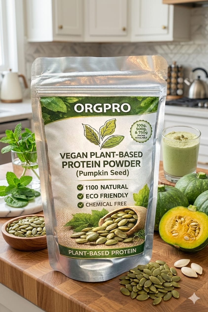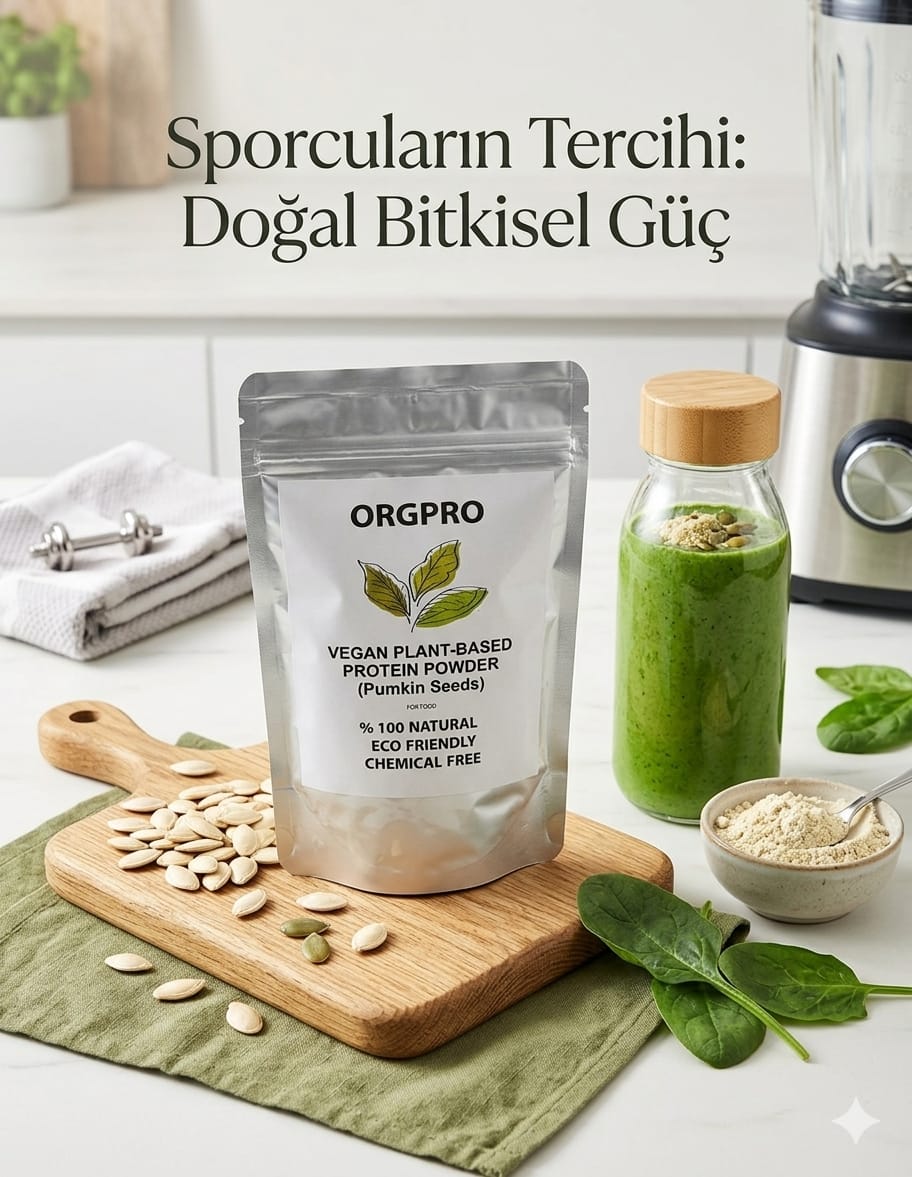 Bitkisel protein tozu %100 doğal ve organik olarak kabak çekidredğinden elde edilmiştir.